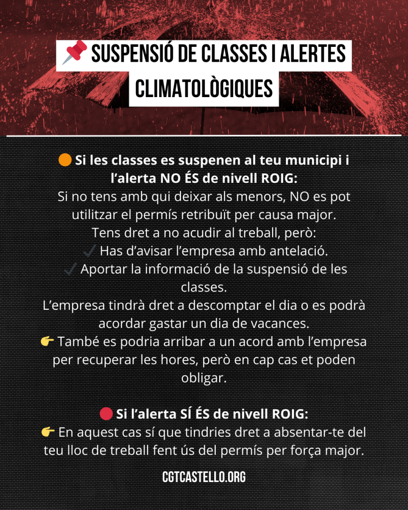 •        Si no tens amb qui deixar als menors, NO es pot utilitzar el permís retribuït per causa major.
